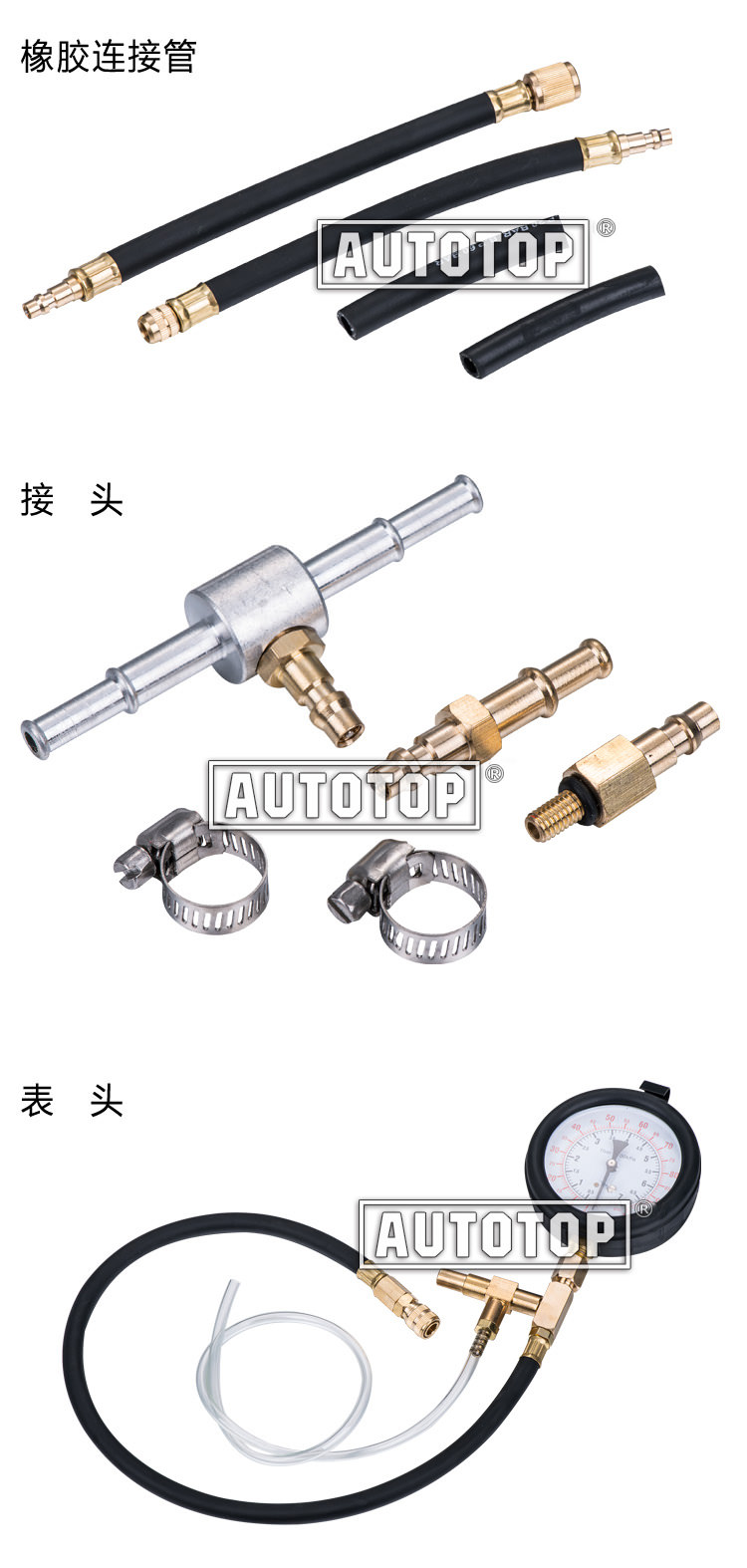 ● 高压双刻度表头,读数范围: 0-100psi(0-7bar) ● 表头带橡胶防护套,挂钩设计方便实用 ● 表组装有减压阀,安全快捷